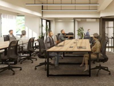 6名用のミーティングスペースを設けやすいレイアウトで、会議や打ち合わせにも最適。