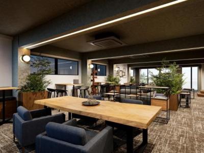 オフィスには、外に設置された屋外スペースも完備されています。美しく整備されたテラスには、リラックスできるソファとテーブルが並び、仕事の合間にリフレッシュするのに最適です。ビジネスミーティングの休憩時間や、晴れた日には外の空気を感じながら仕事をすることができます。