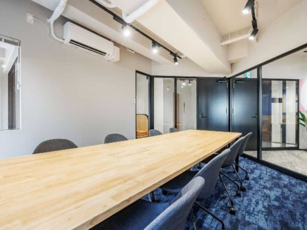 会議室:10名前後で使用可能な会議室付き。ガラスパーティションで圧迫感を抑えた設計。