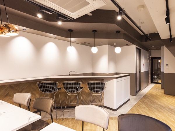 カウンタースペースにはシンクが備わっており、軽食の提供や社内イベントにも対応可能。