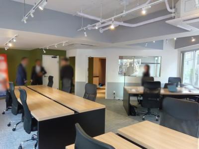 執務室は9階に20名分、10階に16名分の什器を設置済みで、計36名規模のワークスペースを確保。