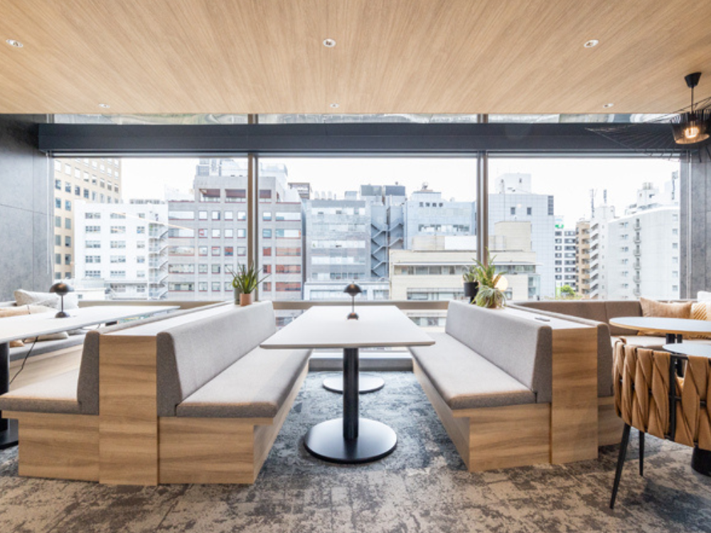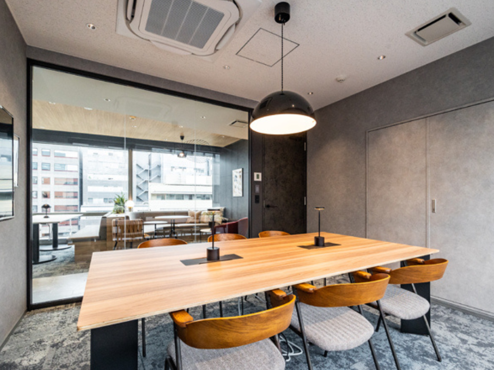 貸室内には8名用会議室やテレカンブース、ラウンジエリアなどが設けられており、さまざまな働き方に対応可能。さらに屋上には開放的なテラスがあり、気分転換や打ち合わせスペースとしても活用できます。