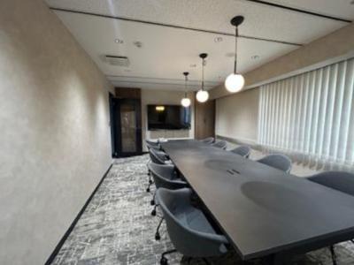 会議室:ガラス張りで開放感を保ちつつ、プライバシーにも配慮。