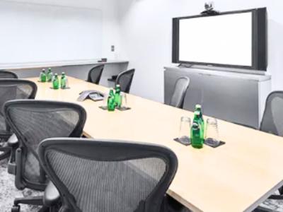 会議室:防音性の高いガラスパーテーションで仕切られ、集中できるミーティングスペース。